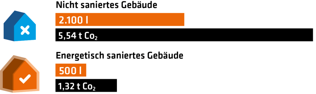 Jährlicher Heizölverbrauch und CO2-Ausstoß für eine 100 m² Wohnung