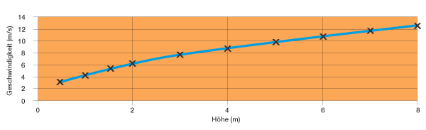 Schon ab einer Fallhöhe von 2 Metern ist die Aufprallgeschwindigkeit 6,2 m/s. Das entspricht einer Geschwindigkeit von 22 km/h. Stellen Sie sich vor, Sie fahren mit einem Fahrrad mit dieser Geschwindigkeit ungebremst auf eine Betonwand. Angenommen, die Masse des Objekts beträgt 100 kg, so ist die zu absorbierende Energie ca. 2 kJ. Somit ist das Objekt beim Aufprall 600 kg schwer, was wiederum 6 kN entspricht.